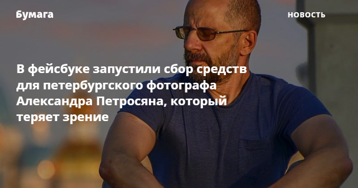 Бывший акционер газеты «Ведомости» Демьян Кудрявцев запустил в фейсбуке сбор средств для известного петербургского фотографа Александра Петросяна. Кудрявцев рассказал, что Петросян теряет зрение.