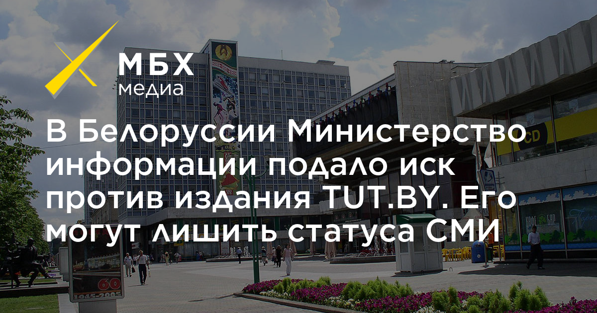 В Белоруссии Министерство информации подало иск против издания TUT.BY за «распространение недостоверной информации». Его могут лишить статуса СМИ. Об этом сообщает белорусский телеканал ОНТ.