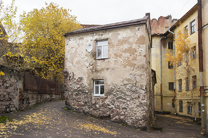 — Мимо здания с титулом самого старого жилого дома в России пройти нельзя. <…> здание не вписывается в сетку улиц, расположено во дворе, что автоматически означает его постройку до 1640-х годов, когда была осуществлена перепланировка города. А раз так, то почему бы не датировать возведение постройки XVI веком? Сказано — сделано. Первый этаж действительно очень старый и сложен из гранитных валунов, толщина стен около метра — шведский период истории города. А вот второй этаж претерпел значительные изменения в 60-х годах прошлого века.