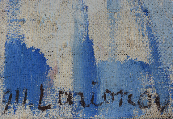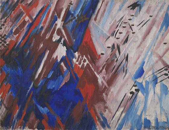 © Verena Franken / Russian Avantgarde Research Project Подпись Михаила Ларионова на картине «Красно-синий лучизм (пляж)» — На выставку приглашали российские музеи?
