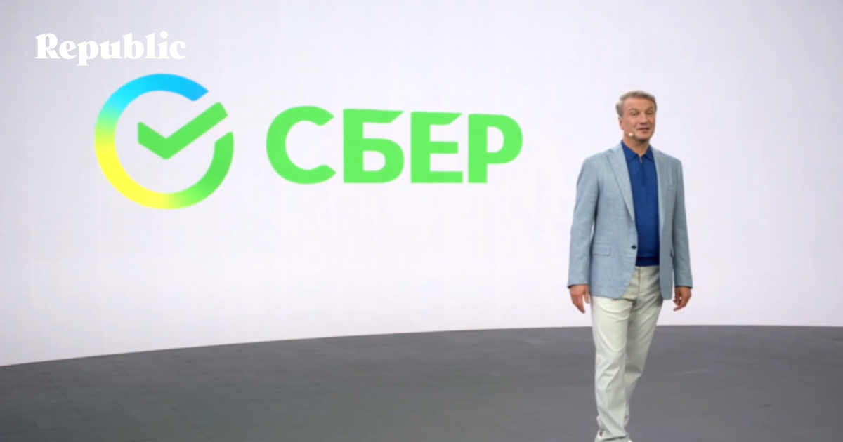 Герман Греф на презентации нового логотипа "Сбер". Скриншот: Сбер