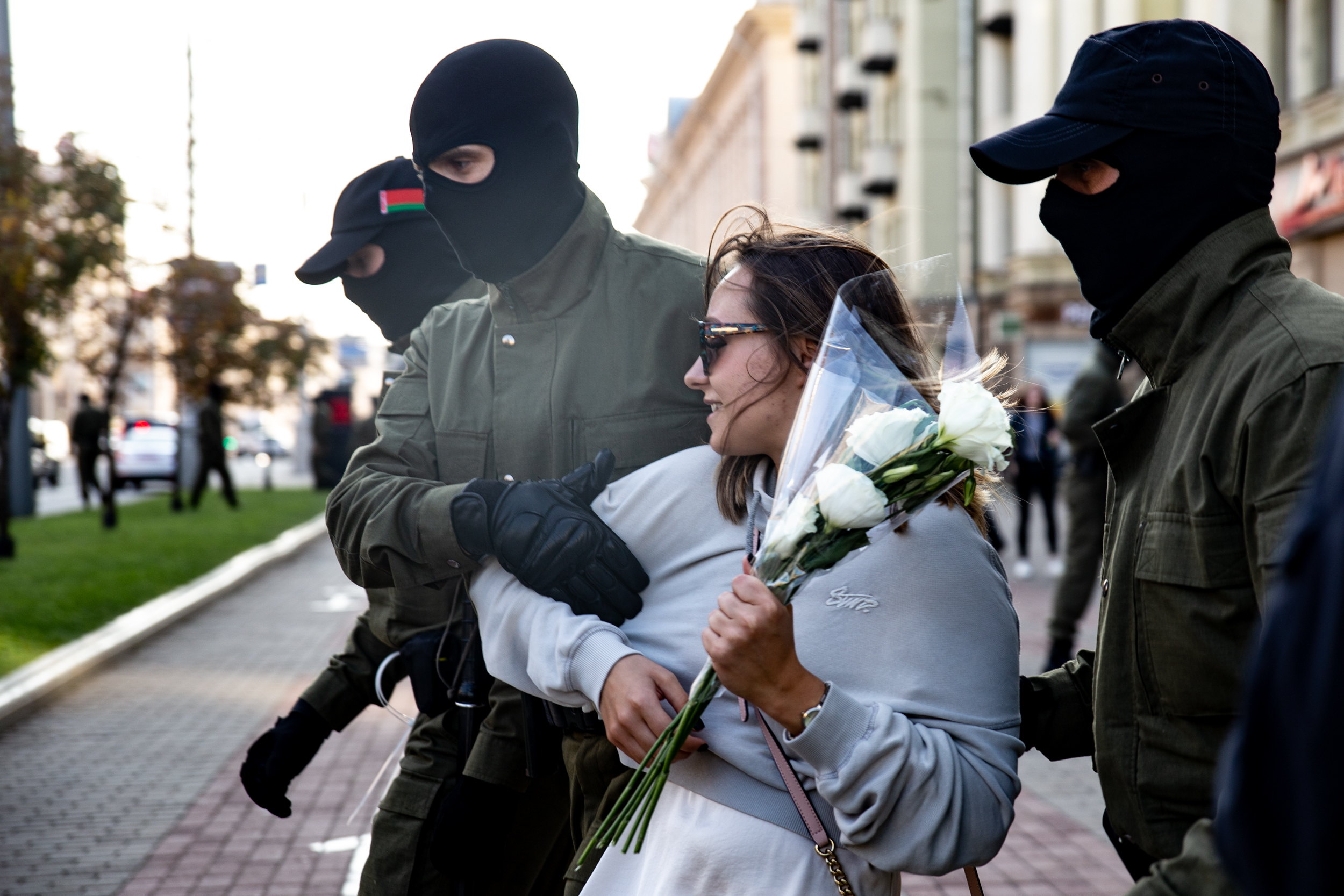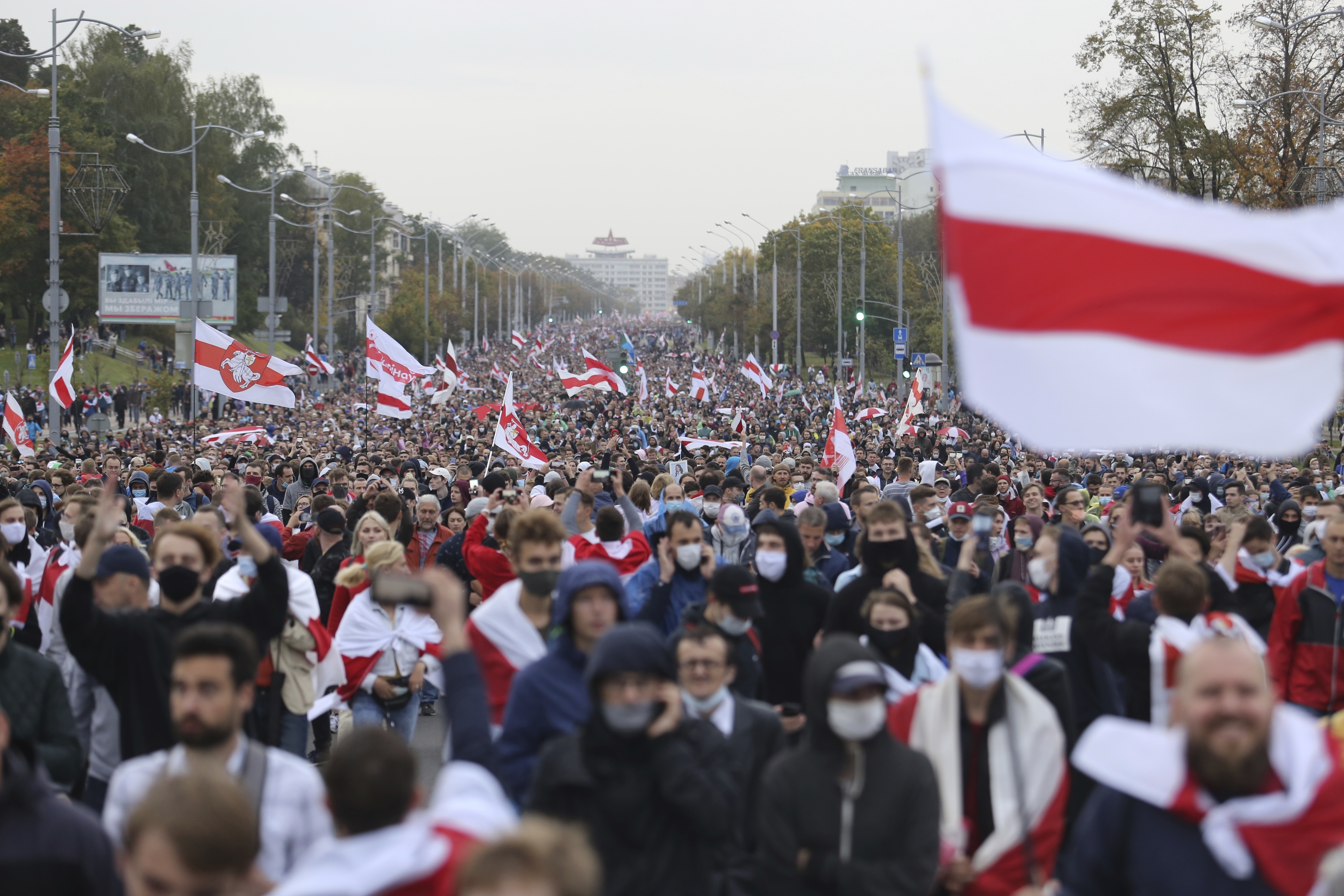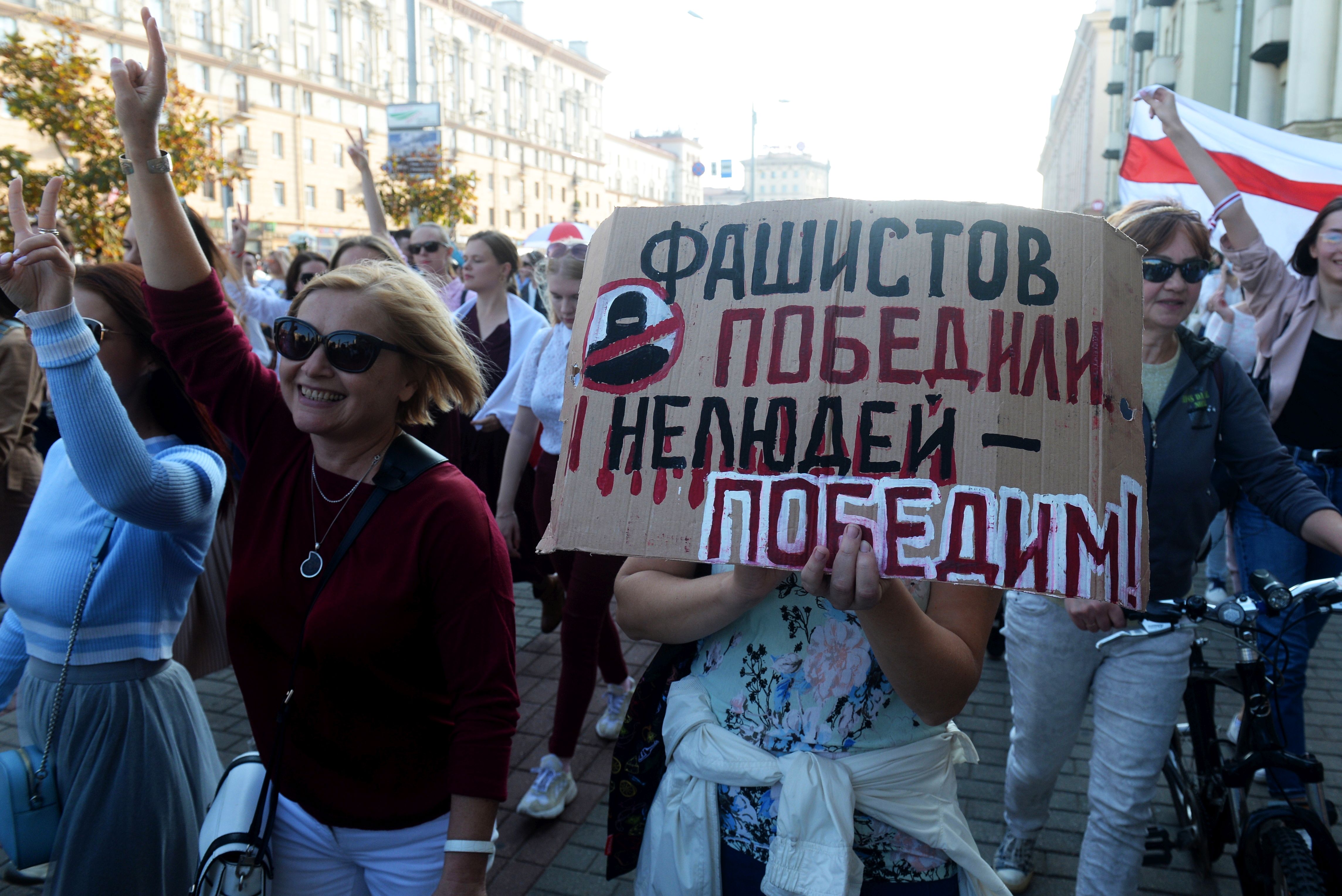 На мирном протесте против результатов выборов президента Беларуси и инаугурации Александра Лукашенко, 26 сентября 2020 года