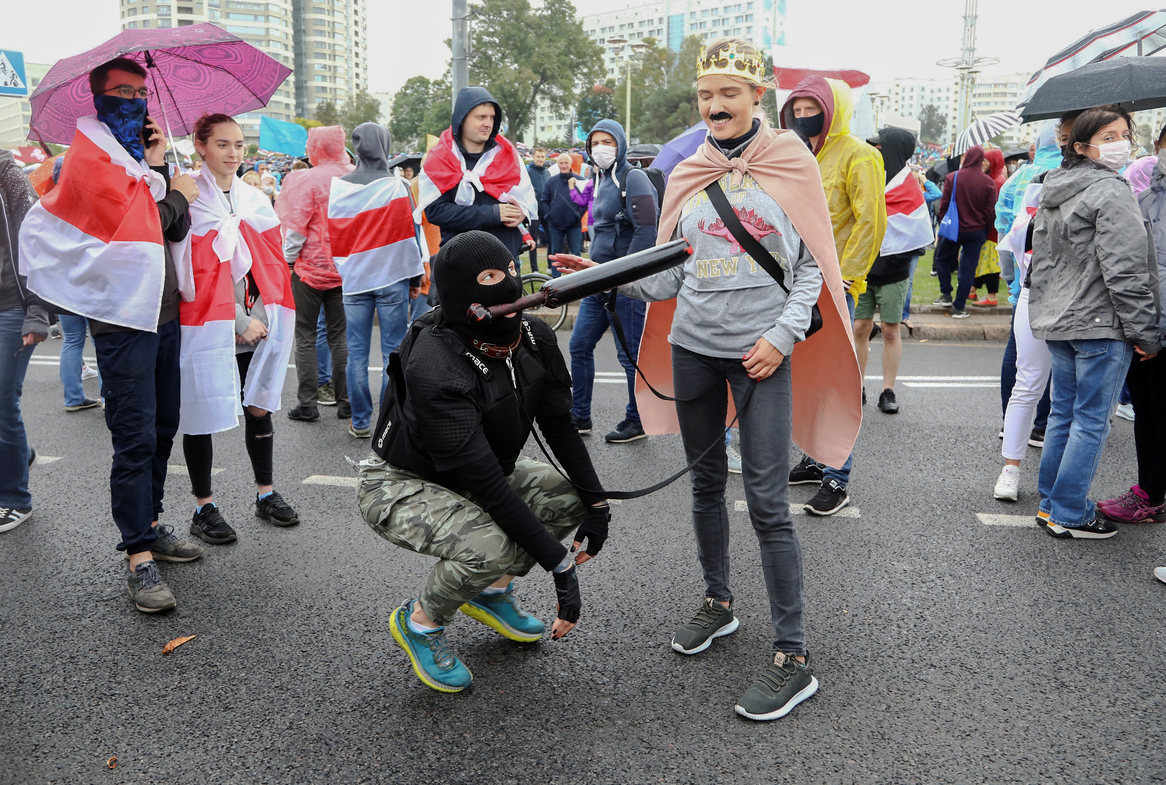 Отдельно я бы добавил потрясающую креативность белорусов. Те слоганы, лозунги, костюмы, в которых они выходят на демонстрацию, показывают, насколько люди далеко ушли ценностно, мировоззренчески от тех, кто пытается их подавить. Одним своим видом, иногда целым перформансом заявляют, что протест не потопляем.