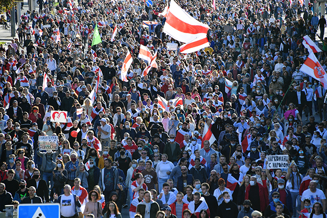Народный протест продолжался, устойчиво сохраняя свой исходный посыл — «Уходи!» Но ни одна политическая группа не проявила себя в течение двух месяцев. Протесты оставались стихийной «революцией против узурпации власти». Известный беларуский поэт и участник протестов Дмитрий Строцев в ответ на вопрос, что это, употребляя беларуское написание, ответил: «ЭВАЛЮЦИЯ» — через А подчеркивая, что это специфически беларуское событие. Не имея политического субъекта — как это и было во многих «уличных революциях» так называемой четвертой волны демократизации, — беларуский протест совершенно протеически принимал разные формы в разные дни. Временами это был «бунт кастрюль» (взрослых женщин), временами — «революция роз» (студентки целуют карабинеров), временами — студенческая революция 1968-го, временами — польская «Солидарность» (забастовочные комитеты и профсоюзы).