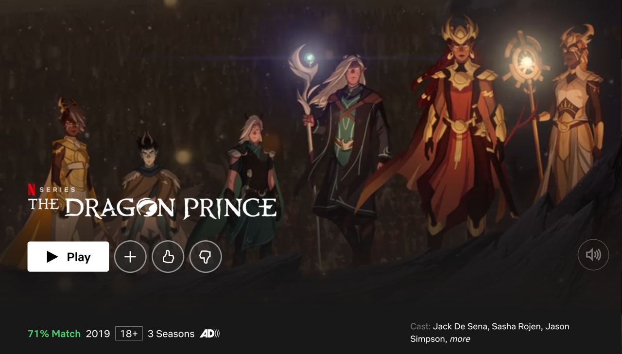 Скриншот сериала «Принц драконов» в поисковой выдаче в российском Netflix. Изначально проект запускался в детском сегменте сервиса.