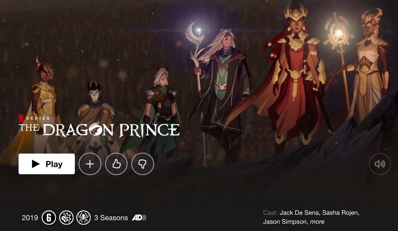 Скриншот сериала «Принц драконов» в поисковой выдаче детского раздела Netflix в Европе. Мульсериал рекомендуют к просмотру с шести лет.