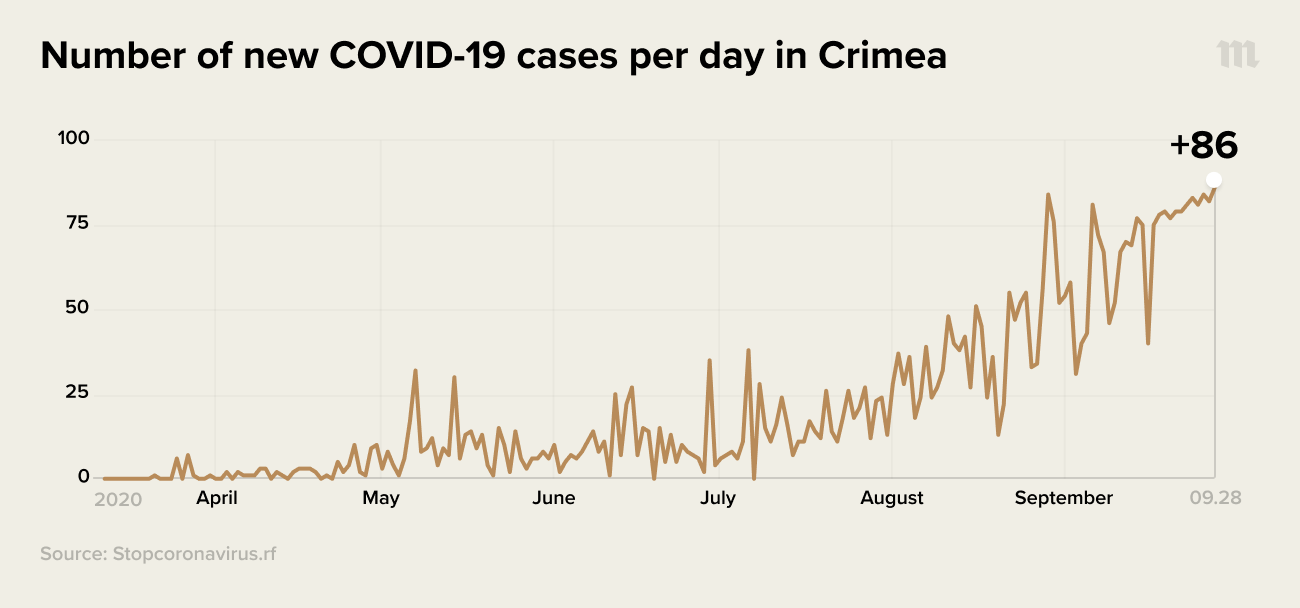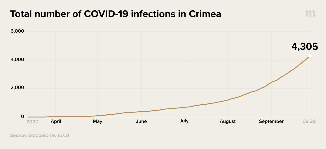 The republican Health Ministry’s chief infectious disease specialist, Tatyana Odinets, admitted at the end of July that the flow of tourists was likely to cause a second coronavirus wave in Crimea. “It all depends on how sanitary norms will be observed. If the coronavirus [spins out] then anything is possible, especially since now the conditions for proliferation in Crimea are more favorable than in another region of Russia,” she said.