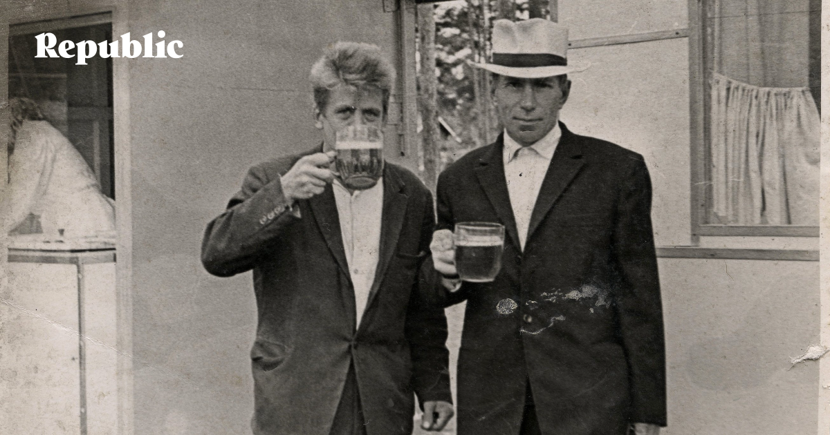 На этих снимках пьют дома, на природе и в гостях или делают вид, что пьют, – специально ради удачного кадра, а неизвестный на снимке фотографа Семикозенко и вовсе куражится, позируя верхом на игрушечной лошадке