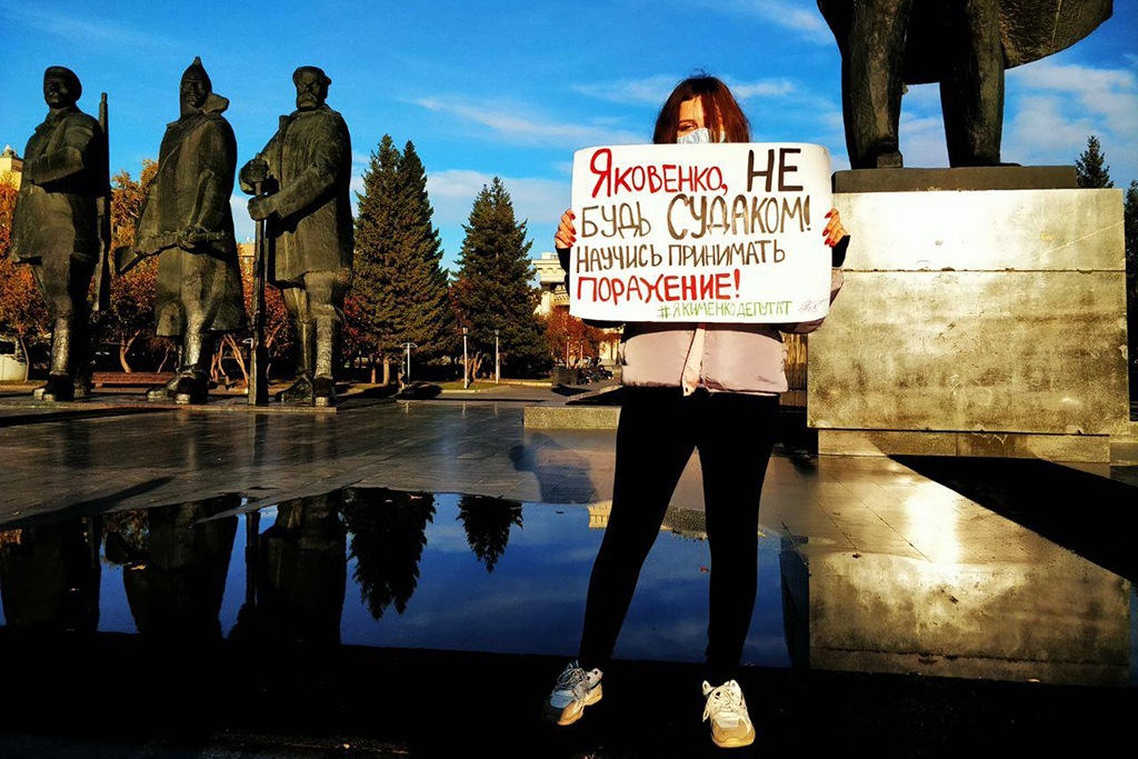 Акции протеста в поддержку независимого кандидата коалиции «Новосибирск 2020» Вячеслава Якименко длятся больше двух недель. На одиночные пикеты вышли жители Москвы и Нью-Йорка. Якименко проиграл выборы в горсовет единороссу и вице-спикеру Евгению Яковенко из-за массового голосования курсантов института нацгвардии, которые могли быть не прописаны на округе.