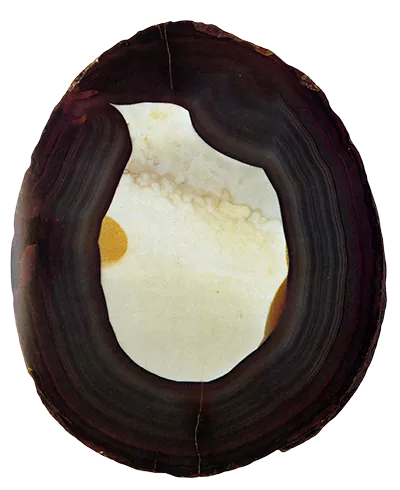 Еще одним удивительным поводом для формальной рефлексии может послужить агат, на одном из образцов которого присутствует «изображение совершенной простоты: одинокая белая фигура на черном фоне закругленной формы, которая внезапно поднимается к верхней левой точке. Это похоже на маленькую птичку, вылупившуюся из яйца, ее тело с крыльями, сложенными по бокам, еще не освободилось от скорлупы, но юная слепая голова уже нетерпеливо вознесена в незнакомое пространство. Борясь за свободу, она обретает пространство, прозрачность, приглашение к полету. Потребовался бы гениальный художник, чтобы вывести удивительно изящный серый край, который оттеняет тело там, где оно выходит из своей тюрьмы, стремясь к свету, а также предчувствуя, что оно способно пройти эту границу насквозь. Это застывшее изображение из твердого камня изображает рождение, зафиксированное в мгновении, чьи форма и цвет вызывают сильные эмоции».