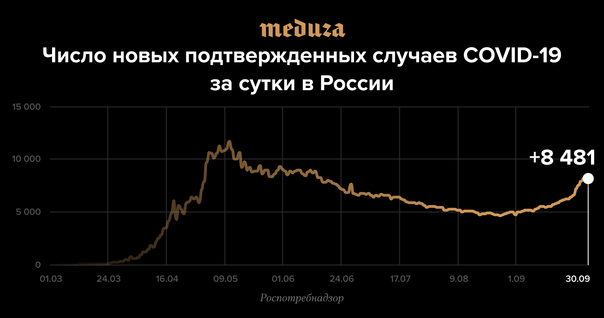 В России третий день подряд больше восьми тысяч новых случаев COVID-19. И их становится больше. Сегодня заболели 8481 человек (вчера 8232). Всего с начала пандемии в стране выявили 1 176 286 случаев ковида. За сутки из больниц выписали 5858 пациентов. За все время выздоровели 958 257 человек. За сутки умерли 177 человек (это, кстати, максимум с 17 июля), всего — 20 722 человека.