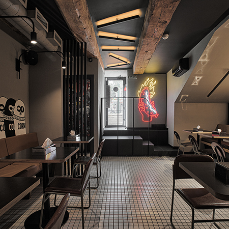 — Большие окна, обожженное стекло, оттенки пыльной розы и бургундского, солнечные зайчики на стенах — камерно и тепло. <…> Не совершайте преступления: не уходите без лимонного чизкейка с меренгой от местного шеф-кондитера Насти Казанской.