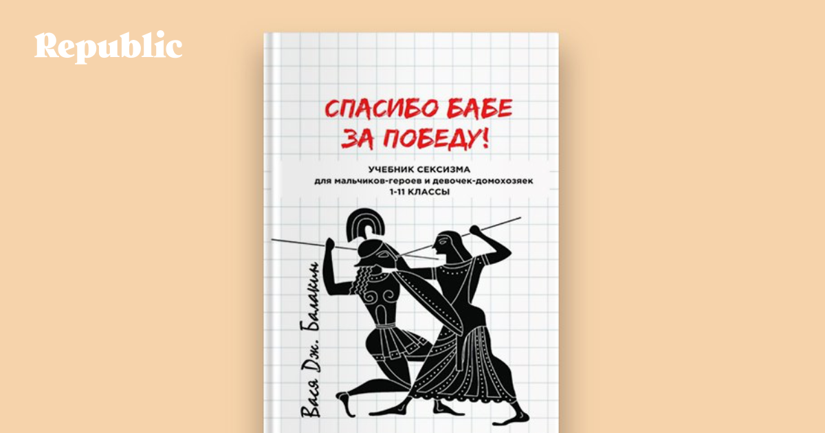«Раз наткнувшись на такую (сексистскую, патриархальную, традиционную – нужное подчеркнуть) установку в учебнике, ребенок может пропустить ее мимо ушей, но на следующей странице он читает вторую, потом третью, четвертую, и за 11 лет на него обрушиваются тысячи таких идей и картинок, которые формируют у будущего члена социума устойчивый стереотип поведения», – полагает автор книги «Спасибо бабе за победу! Учебник сексизма для мальчиков-героев и девочек-домохозяек. 1–11 классы» журналист Вася Дж. Балакин.