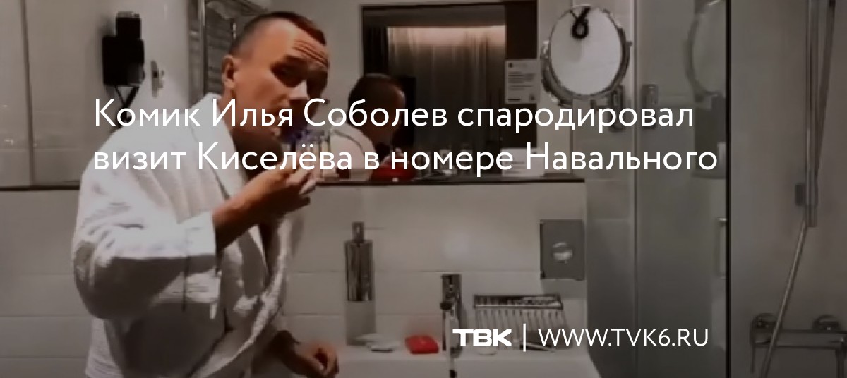 Илья Соболев спародировал телеведущего Дмитрия Киселёва после его репортажа из томского номера оппозиционера Алексея Навального. Напомним, он отправился в томский отель Xander, где находился политик Алексей Навальный перед перелетом в Москву.