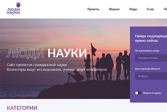 Ассоциация коммуникаторов в сфере образования и науки запустила портал «Люди науки» (citizen-science.ru) — некоммерческий бесплатный онлайн-проект, посвященный научному волонтерству.