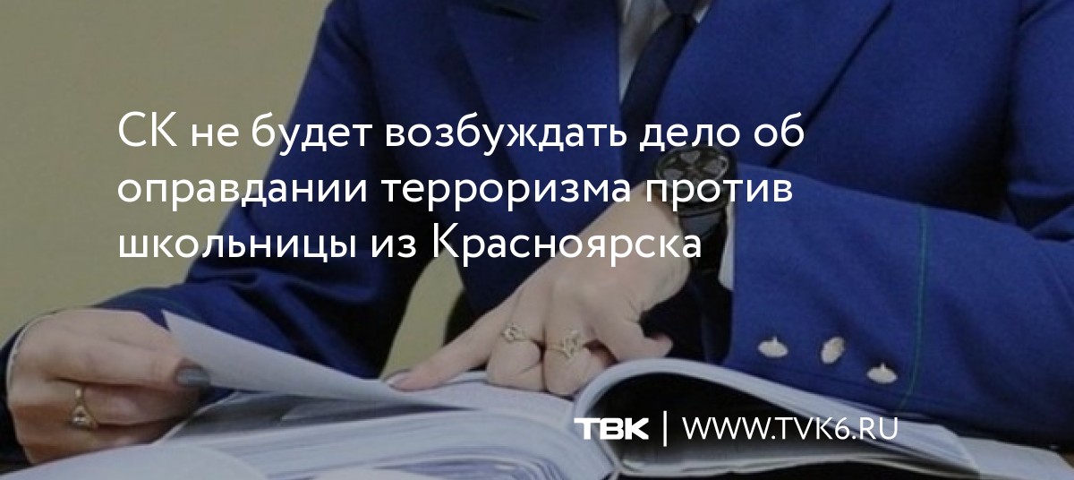 СК не будет возбуждать дело об оправдании терроризма против школьницы из Красноярска
