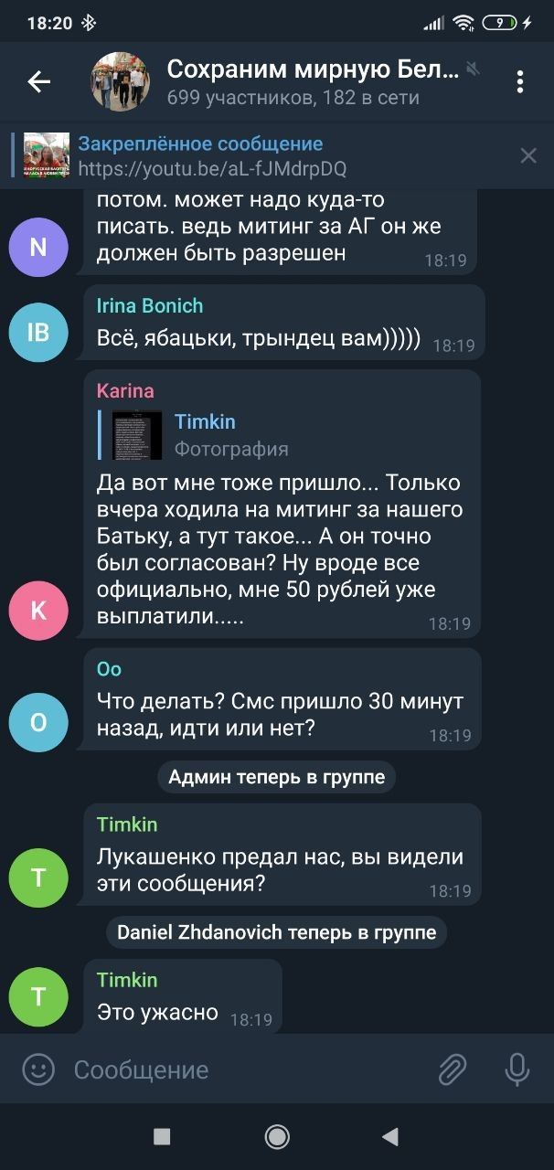 По соцсетям ходят слухи о том, что такие же СМС от МВД получили и участники акций в поддержку Александра Лукашенко, которые проходили в разных городах страны (на них, замечали журналисты, людей часто свозили на автобусах). И этих получателей, кажется, такие сообщения напугали.