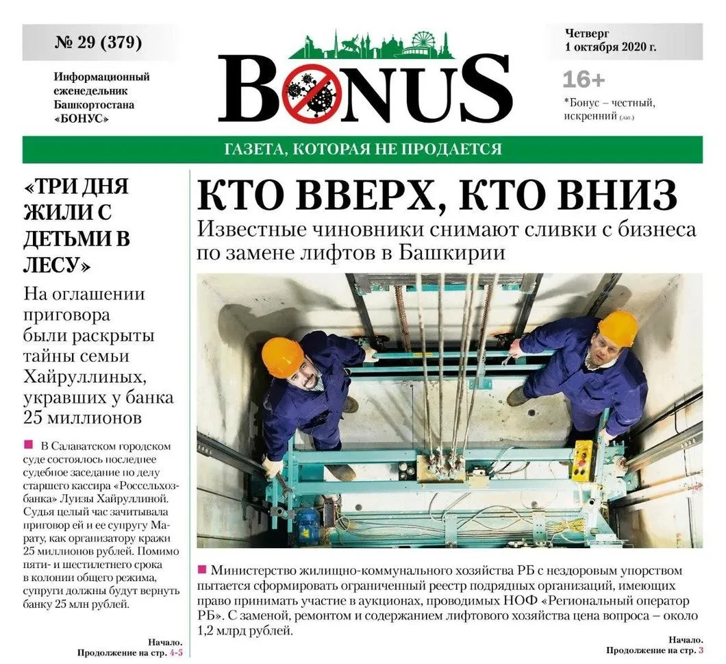 В четверг из типографии «Башкортостан» пропал весь тираж газеты «Бонус». В номере издания должна была появиться статья о бизнесе семьи руководителя администрации главы республики Александра Сидякина и об ограничении конкуренции в регионе.