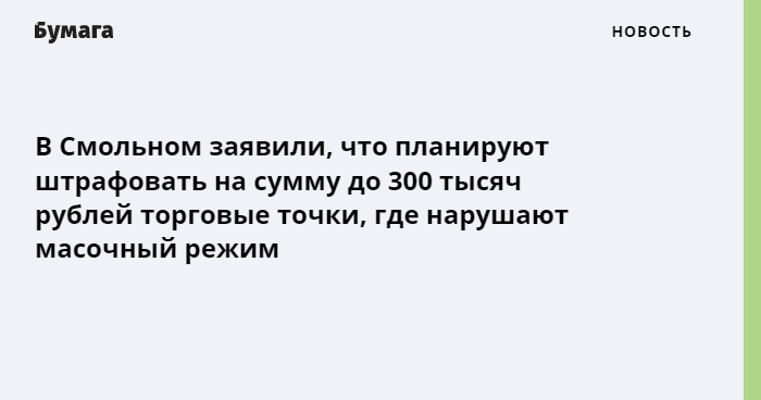 Чиновники классифицируют нарушение санитарных норм, в том числе отсутствие масок на сотрудниках и посетителях, как «Невыполнение правил поведения при чрезвычайной ситуации или угрозе ее возникновения» (ст. 20.6.1 КоАП). По данной статье штраф для юридических лиц составляет от 100 до 300 тысяч рублей. Если такие нарушения повлекли за собой причинение вреда здоровью человека или имуществу, организациям грозит штраф 1 миллиона рублей или приостановка работы на срок до 90 суток.