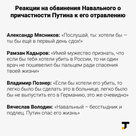 «Ещё бы в первый день сдох»: как российские власти ответили на обвинения Навального о причастности Путина к отравлению