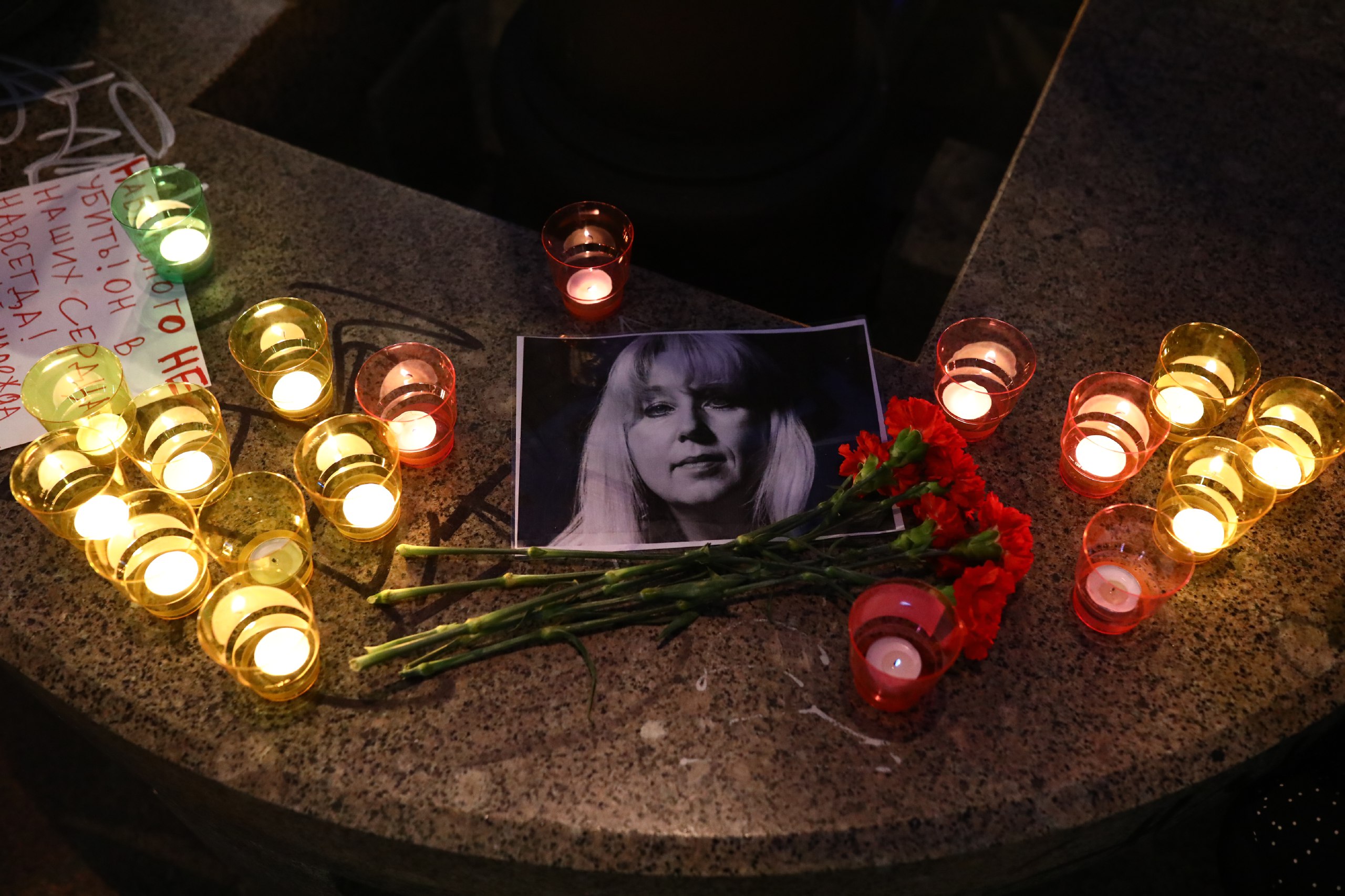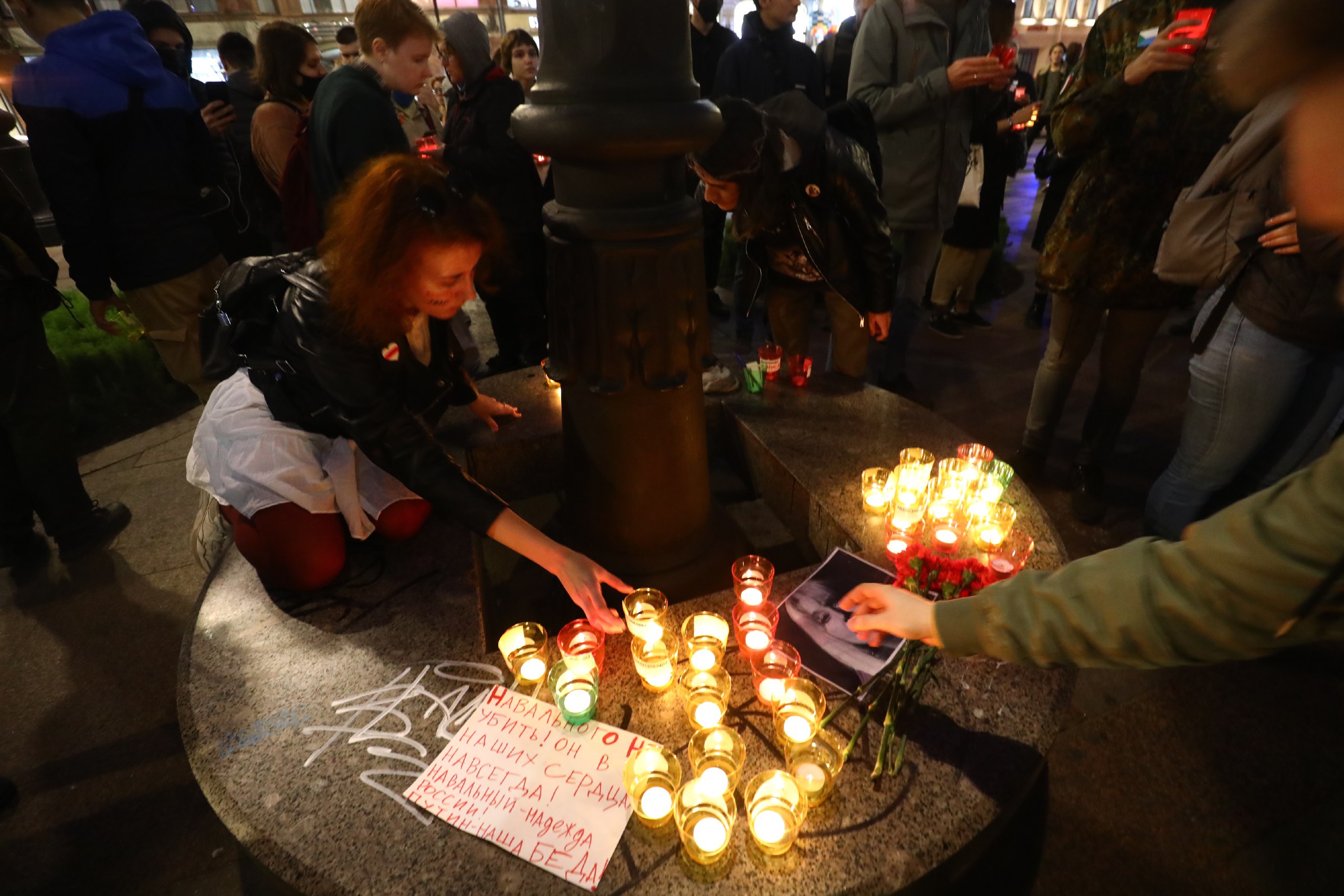 В Петербурге вечером 3 октября прошла акция памяти в честь нижегородской журналистки Ирины Славиной, которая сожгла себя у здания местного МВД. Она попросила винить в своей смерти «Российскую Федерацию».