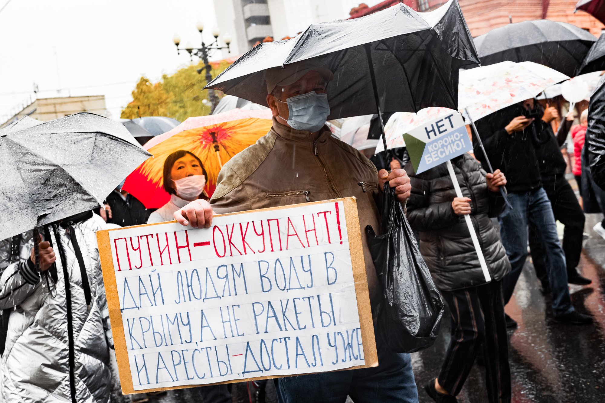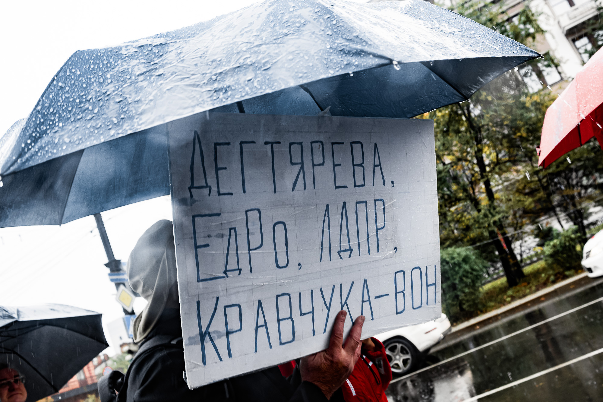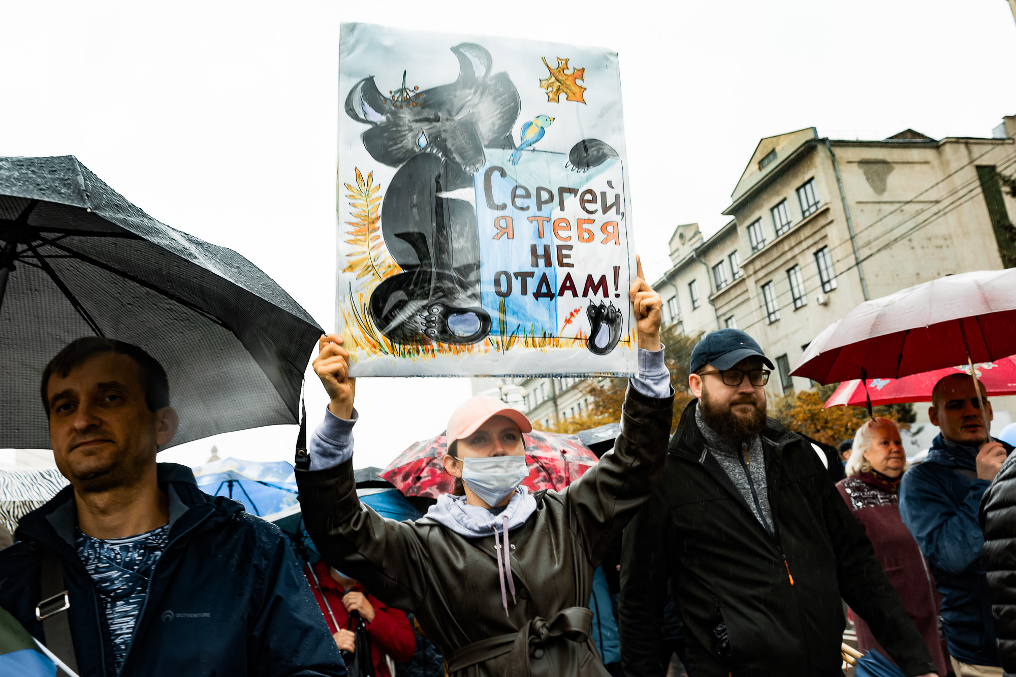 – Это же знаете, "г..о" Путина, он просто "сходил" на наш край, – поясняет Виктор. В его руках плакат "Путин наше зло". – У меня просто не хватило места на плакате, а так еще много чего написал бы. Уже весь здравомыслящий народ так считает. Только он во всем виноват: в отравлении Навального, в нашей жизни такой. Вот, посмотрите, Литва, Латвия и Эстония – они живут получше нашего. А все почему? Понимают, что Путин убийца и вор, что не нужно с Россией связываться. А Путина садить нужно, судить, а не Фургала. Вот он убийца и вор.