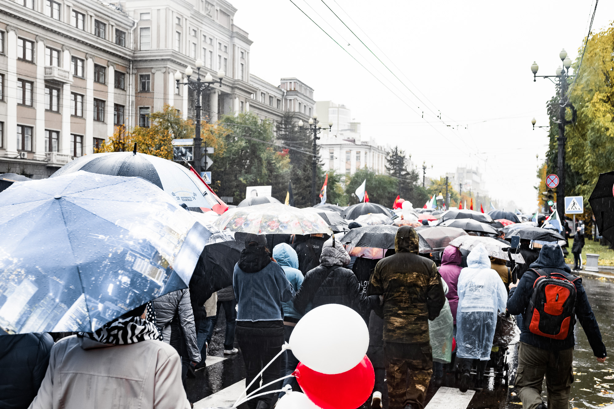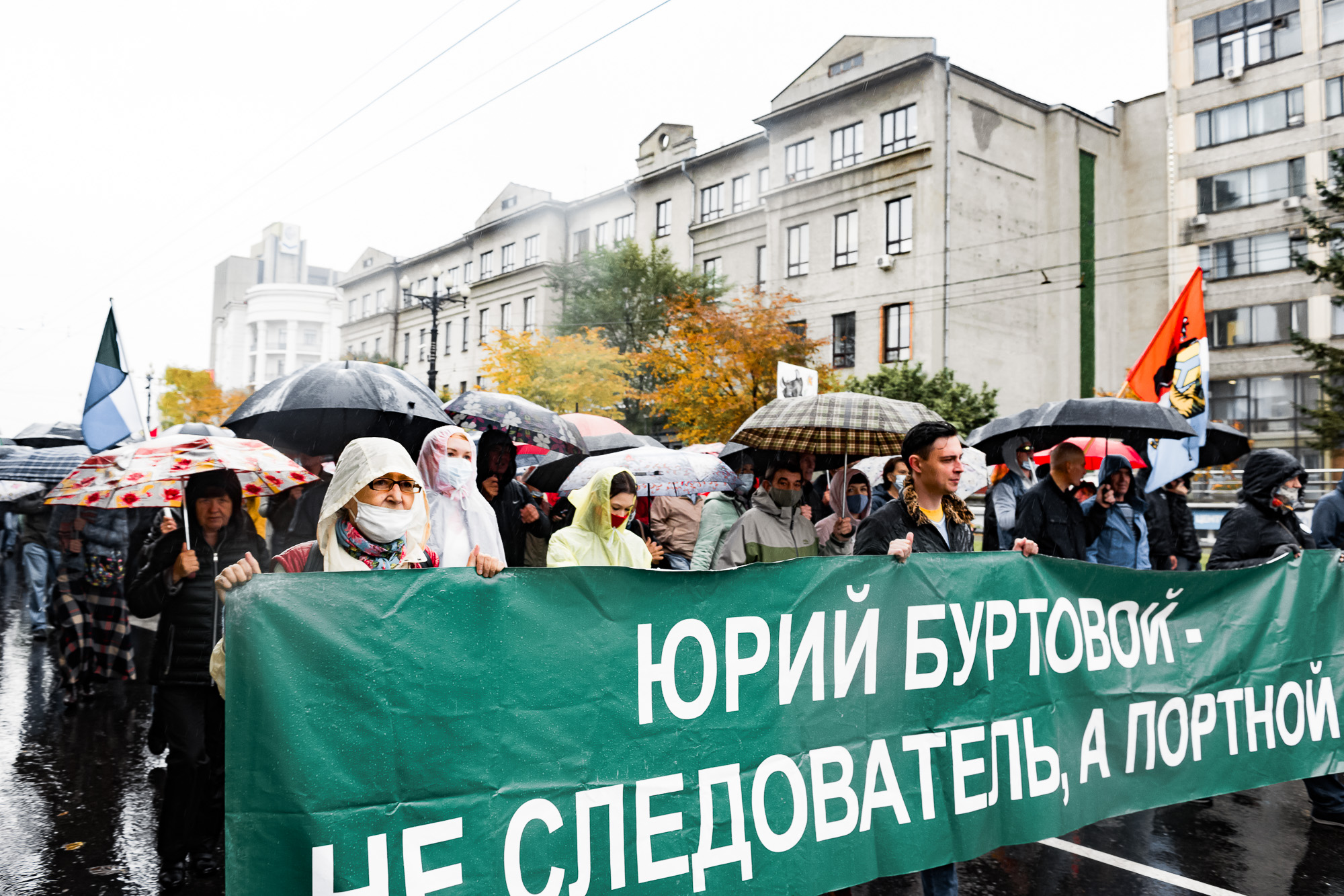 Тринадцатая суббота протестов в Хабаровском крае началась с поддержки Беларуси и похорон "Банды Путина". Протестующих не остановил сегодня ни проливной дождь, ни новый "концерт", заглушавший все лозунги, ни усилившаяся группировка полиции.