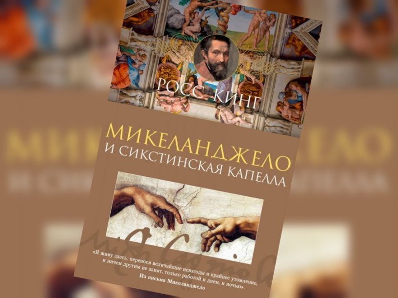 Росс Кинг — автор бестселлеров «Леонардо да Винчи и "Тайная вечеря"», «Чарующее безумие. Клод Моне и водяные лилии». Его очередная книга — увлекательный рассказ о том, как создавалась роспись потолка Сикстинской капеллы, основанный на исторических документах и последних исследованиях историков и искусствоведов. Это история титанического труда на фоне мучительной творческой неудовлетворенности, бесчисленных житейских тягот, тревожных политических коллизий, противостояния с блестяще одаренным молодым соперником — Рафаэлем из Урбино и влиятельным архитектором Браманте, а также напряженных отношений с властительным заказчиком. Созданной вопреки всем невзгодам величественной фреске суждено было прославить имя Микеланджело в веках.