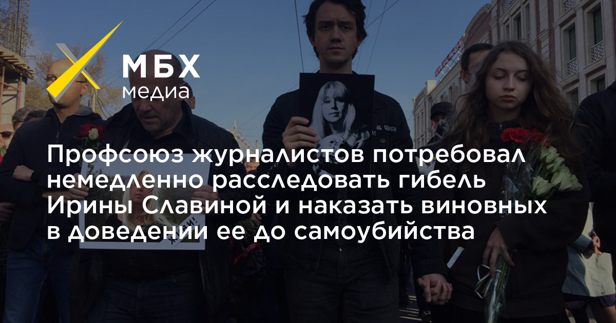 Журналисты подчеркнули, что дело должно быть расследовано не нижегородскими силовиками, которые могут быть причастны к смерти Ирины, а федеральными структурами. Также профсоюз призвал журналистов всех редакций рассказывать о том, что случилось со Славиной. «Ирина написала «В моей смерти прошу винить Российскую Федерацию». И наш долг разобраться в причинах, по которым это произошло. Пусть каждый в России помнит и знает о том, что случилось», — сказано в письме.
