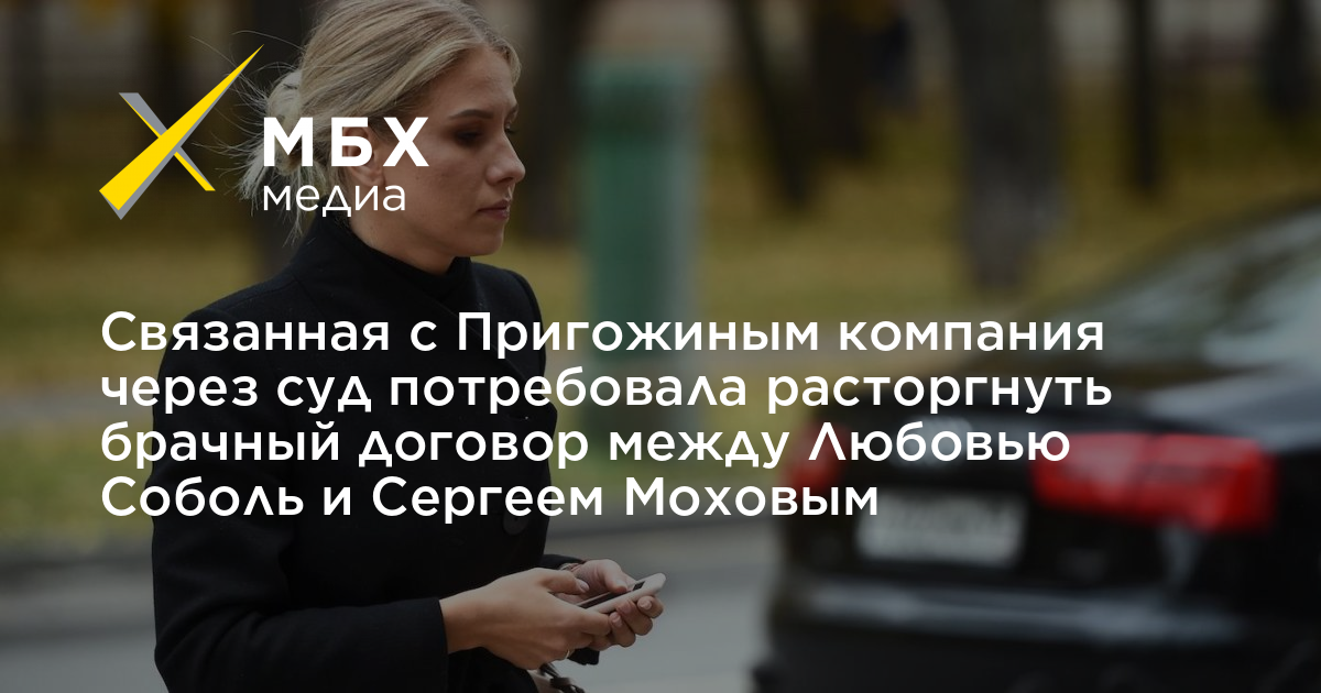 Компания «Московский школьник», которую связывают с «поваром Путина» Евгением Пригожиным, потребовала расторгнуть брачный договор между юристом ФБК Любовью Соболь и антропологом Сергеем Моховым. Соответствующий иск «МБХ медиа» обнаружило в картотеке Симоновского районного суда Москвы.