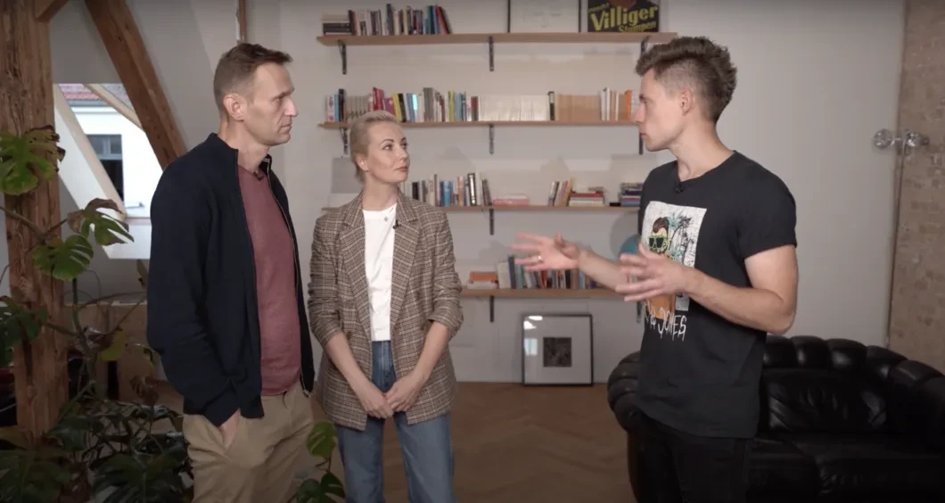 Алексей Навальный, Юлия Навальная и Юрий Дудь. Скриншот