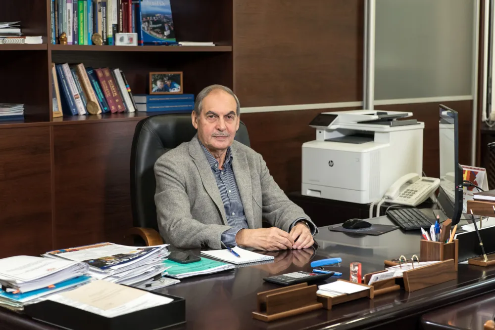 Это интервью Леонид Кравчук дал еще в директорском кабинете. В приемной — портрет академика Моисея Маркова, инициатора создания ИЯИ. Справа от рабочего стола фотография первых директоров НИИ, Альберта Тавхелидзе и Виктора Матвеева. Кравчук — третий, он руководил институтом формально с 2015-го по 2020 год, а фактически был у руля с 2012-го, с момента, когда Матвеев получил предложение возглавить дубнинский ОИЯИ. Леонид Владимирович рассказывает о своем пути от слесаря 6-го разряда до ученого-физика, членкора РАН, о создании и нынешней жизни мегаобъекта советской науки — Троицкого линейного ускорителя, о том, чем гордится ИЯИ и что нужно для его дальнейшего развития.