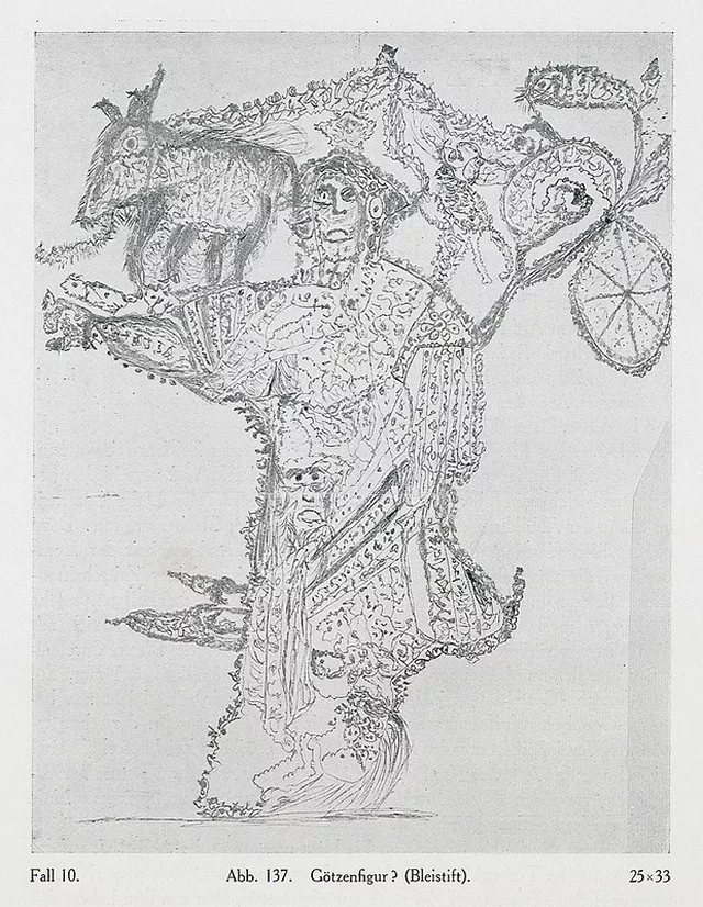 В 1922 году, через год после выхода книги Моргенталера, его немецкий коллега Ханс Принцхорн выпустил обильно проиллюстрированный фолиант «Художественное творчество душевнобольных», собрав под одной обложкой множество историй о художниках с ментальными особенностями. В книге представлены 187 работ и теоретическая часть — исследования десяти конкретных случаев «мастеров-шизофреников».