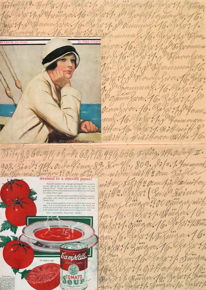 Тогда-то он и начал заниматься творчеством, причем не только рисовать, но и писать, сочинять музыкальные партитуры (не владея никаким инструментом), а также выдавать алгебраические выкладки и делать коллажи из журнальных вырезок. Среди прочего он создал коллаж с изображением банки супа Кэмпбелл — за тридцать лет до того, как к образу этого продукта обратился Энди Уорхол.