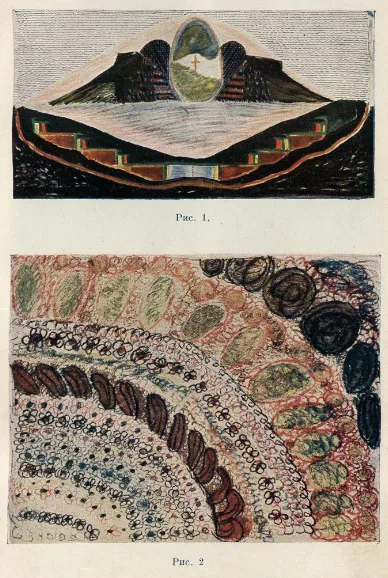Отечественное издание, в чем-то похожее на книгу Принцхорна, вышло четырьмя годами позже — в 1926 году. Российский психиатр, действительный член РАХН Павел Иванович Карпов был одним из первых исследователей арт-терапии и собирателем искусства своих пациентов — и относился к нему не только как к части «истории болезни». В чем и заключается важность его книги, в которой можно найти стихи, прозу, графику, а также размышления автора о месте ментальных расстройств в жизни и устроении общества: