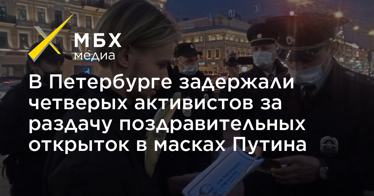 В Петербурге задержали четверых активистов за раздачу поздравительных открыток в масках Путина