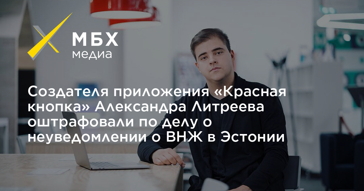 Мировой суд в Ленинградской области оштрафовал на 50 тысяч рублей создателя приложения «Красная кнопка» для помощи задержанным на митингах и основателя компании «Vee Security» Александра Литреева по уголовному делу о неуведомлении о виде на жительство в Эстонии (статья 330.2 УК). Об том сообщил «МБХ медиа» адвокат Аркадий Чаплыгин.