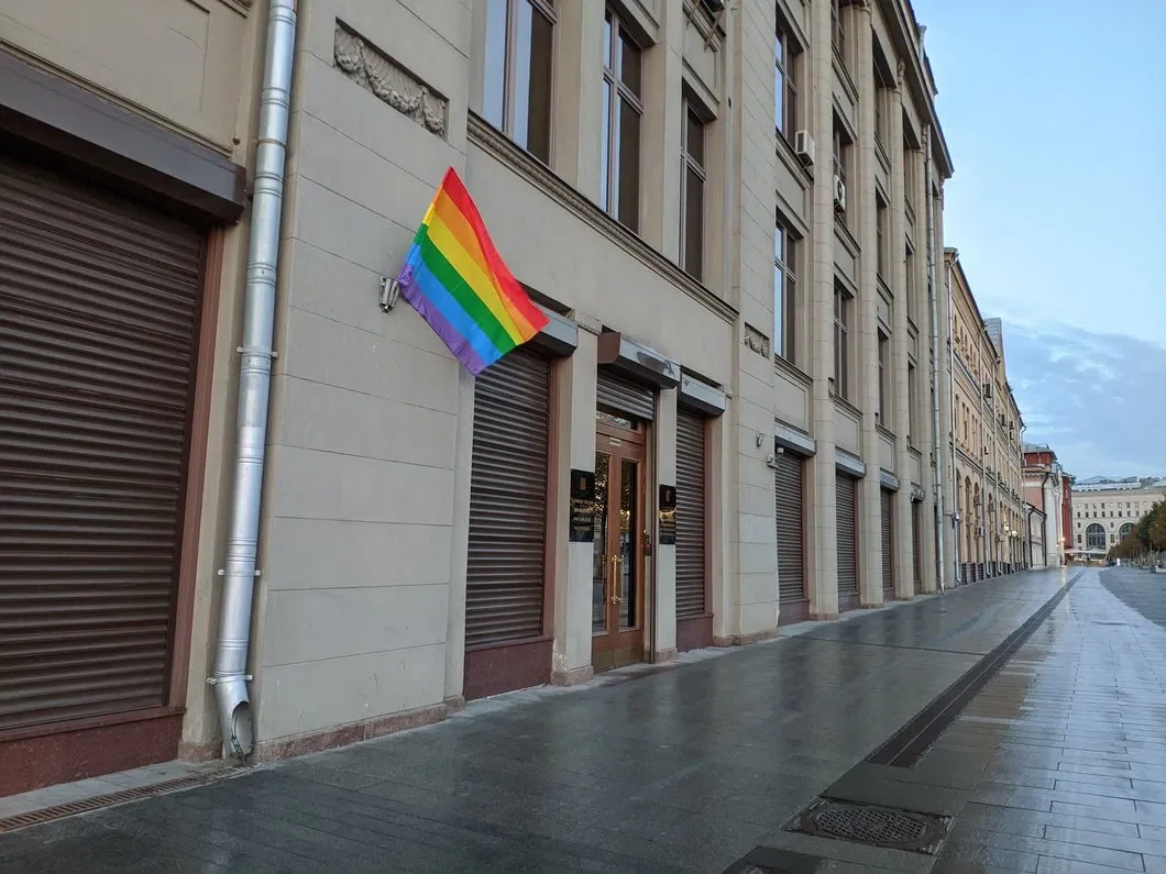 Утром в среду группа Pussy Riot развесила ЛГБТ-флаги на зданиях ФСБ, администрации президента, Верховного суда и Минкульта в Москве.