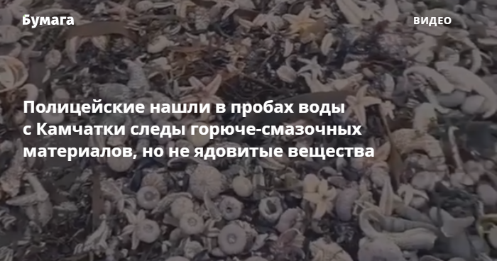 Экспертно-криминалистический центр МВД обнаружил в пробе воды, взятой на Халактырском пляже на Камчатке, только следы горюче-смазочных материалов, но не ядовитые вещества. Об этом сообщает Генпрокуратура России.