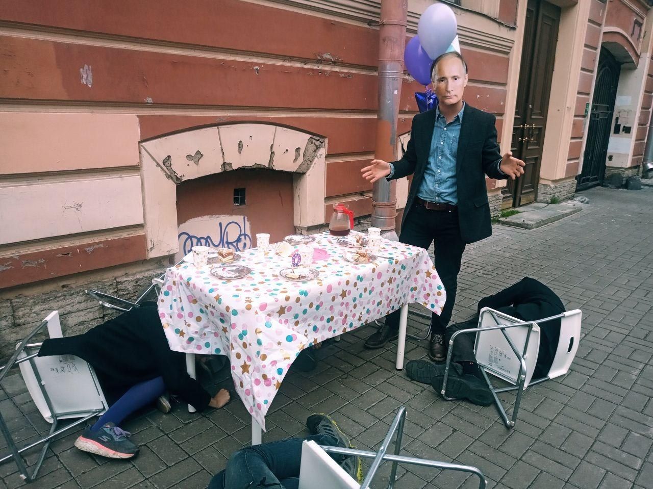 Ранее днем активисты движения «Весна» провели акцию, посвященную дню рождения Владимира Путина. Они устроили праздничное чаепитие у стен дома в Басковом переулке, где вырос президент.