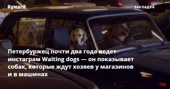 Петербуржец Александр Онищенко с октября 2018 года ведет блог Waiting dogs в инстаграме. Он показывает собак, которые «грустно ждут хозяев» у магазинов, кафе и в автомобилях.
