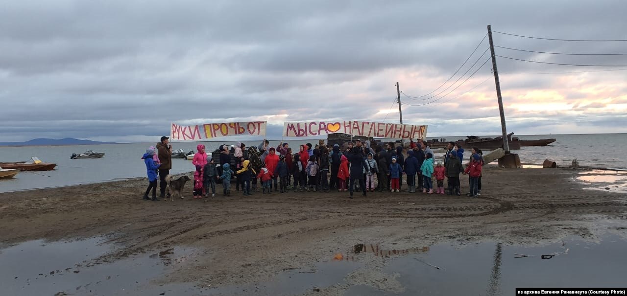– Чтобы отстоять свою родину, на улицу вышли даже самые маленькие жители села Рыткучи. На самом деле мы не ожидали, что народ пойдет и их будет несколько десятков. Когда мы написали о планах по строительству, то добавили, что снимем видео на улице села – я планировала стоять в кадре с плакатом против этой стройки и объяснять, чем опасна дорога, почему не нужен порт на мысе Наглейнын. Но не успели даже видео начать снимать, как одиночный флешмоб превратился в стихийное собрание возмущенных жителей. Десятка три вышли, – вспоминает Вуквукай.