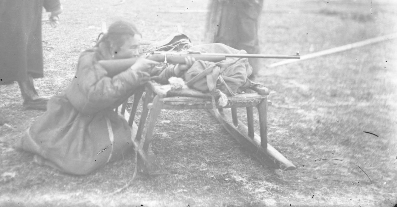 Прицел…Фото: архивные фотоматериалы 1930—1940-х годов. Этнографическое собрание М. С. Синицына «Что, разве без книг люди глупые?! — спрашивает меня Нёлёко и сам отвечает. — Книги что — ерунда, пустяки. Кому делать нечего, тот в книги смотрит. Нум не любит книги. Зачем школы? Мы не просили! Они нам не нужны. Да, русские — все в бумажках. С бумажками занимаются, в бумажках и умы. А ненцы руками, — вытянул, показал свою руку, полюбовался на нее, — руками думают. Думают, как бы что руками сделать. Руками живут».