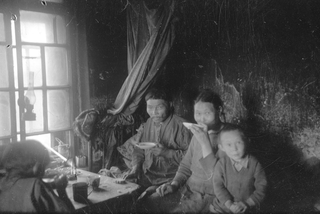 Нёлёко говорит, отхлебывая чай из блюдечка: «С нерпы да рыбы потому так пить хочется, что они в воде живут»Фото: архивные фотоматериалы 1930—1940-х годов. Этнографическое собрание М. С. Синицына Без всяких просьб хозяйка высушила и, где надо, заштопала нам малицы. Она делала это так, будто обязана привести в порядок наше платье. Нас кормили, угощали чаем, и все это молча, словно мы старые друзья семьи. В приеме, оказанном путникам, не было ничего исключительного. Это долг каждого. Такое радушие стало обычаем, хорошим обычаем безвозмездно и молча помогать человеку в тундре. Так же и с едой: все, кто зашел в чум — будь то знакомый или незнакомый, — без всяких приглашений (они здесь не приняты) присоединяются к трапезе. Перед ними всегда поставят миски. Человек, проездом вошедший в чум в рваных кисах, наутро может оказаться в новой обуви, которую хозяин дал путнику. И никто не говорит «спасибо». В ненецком языке нет такого слова.