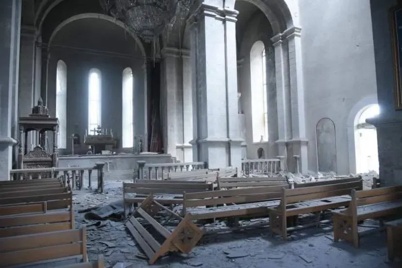 Собор XIX века попал под обстрел в карабахском городе Шуша
