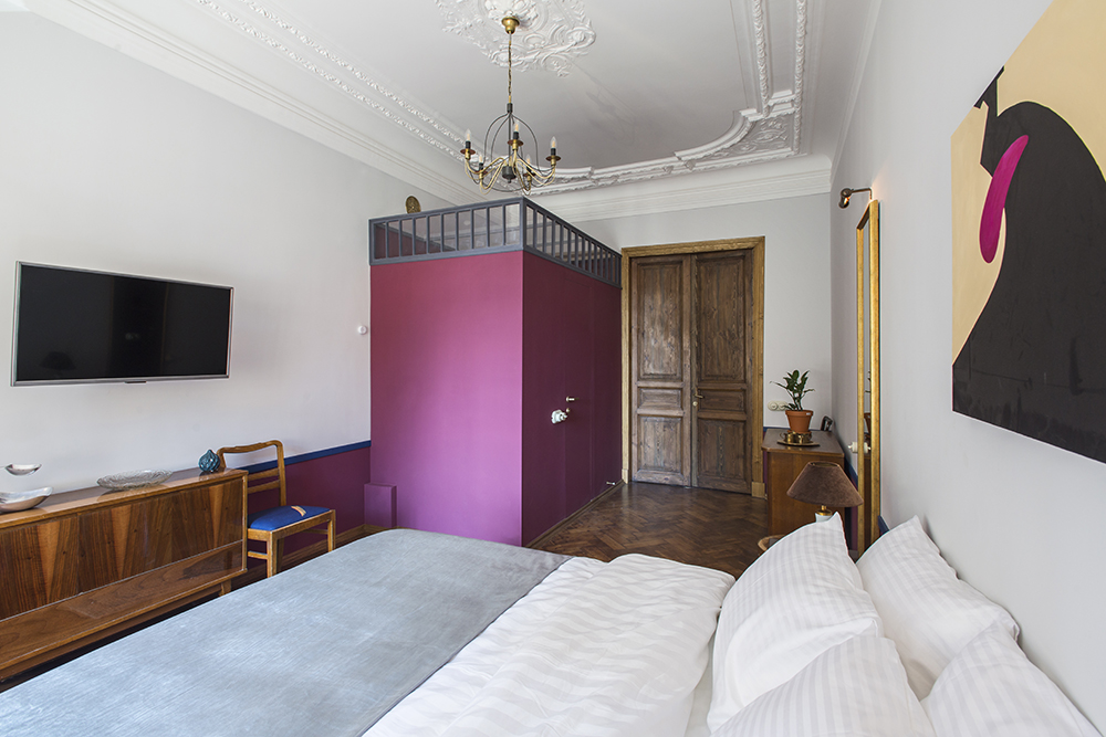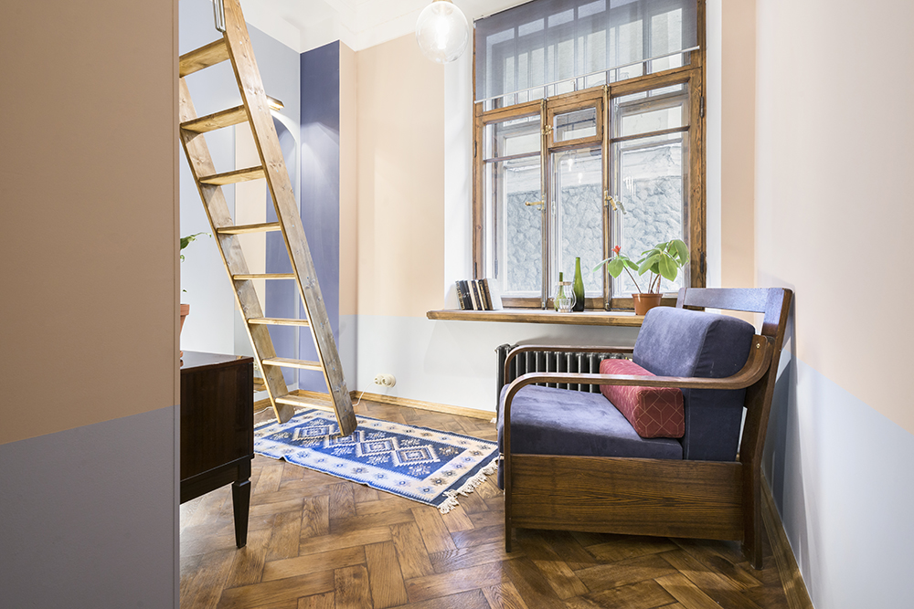 У нас сразу появилась идея сделать апарт-отель в исторической квартире. Поэтому к помещению было много требований: лепнина, оригинальные окна, паркет, двери, фурнитура, печка. У нас не стояло задачи сделать бизнес, хотелось бережно отреставрировать и на основе этого сделать что-то напоминающее небольшой отель.
