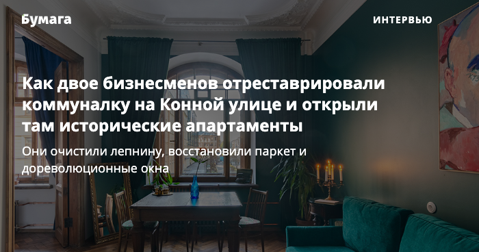 Как двое бизнесменов отреставрировали коммуналку на Конной улице и открыли там исторические апартаменты