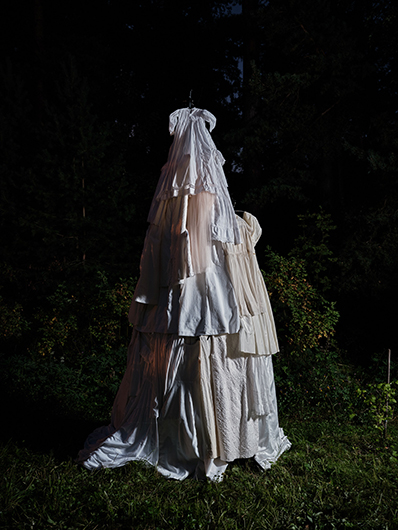 © Gridchinhall Gallery Вера Хлебникова. Инсталляция для проекта «Личный космос» Модная в 2010-е тема космизма неожиданно завернулась, как улитка, в свою собственную раковину: не то космическое оказалось сужено до приватного, не то частное развернуто в колоссальный космический размер. Основной схемой и метафорой космоса стало платье: детское или свадебное, платье-переход, платье-инициация или платье-воспоминание.