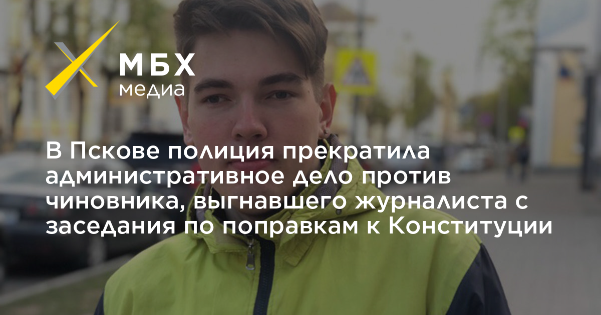 В Пскове полиция прекратила административное дело против чиновника, выгнавшего журналиста с заседания по поправкам к Конституции