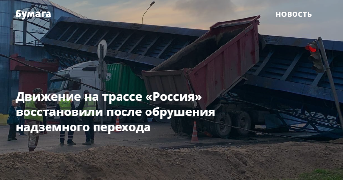 Вечером 11 октября водитель самосвала снес в Любани пешеходный мост, обломки надземного перехода лежали на проезжей части, из-за чего дорогу перекрыли.